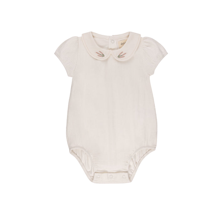 Baby Girl Romper | Embroidered Collar Collection | Ivory Heather | Ely's & Co | SS25